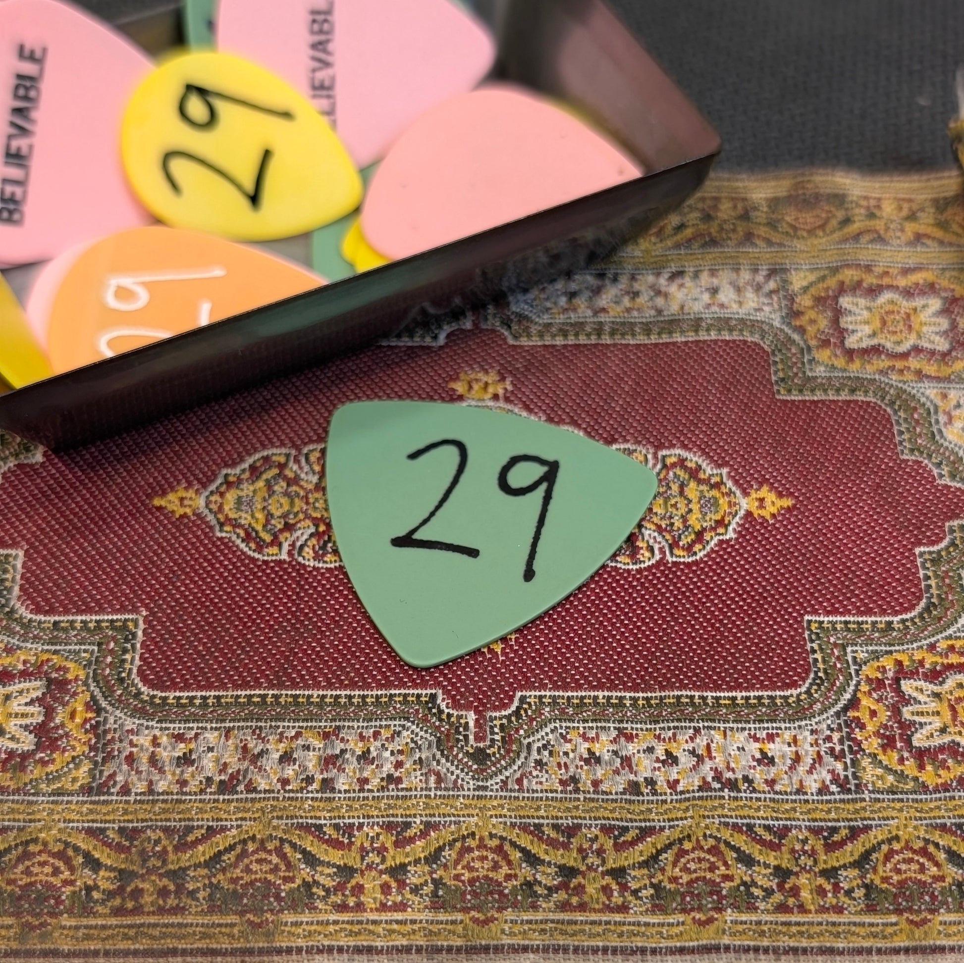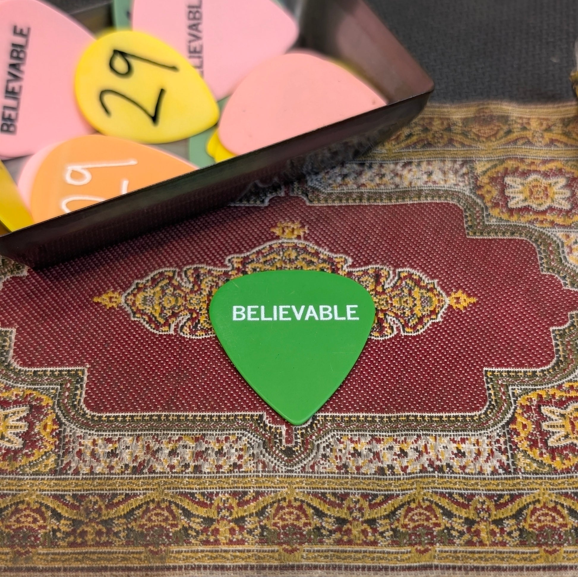 I took a long journey listening to different guitar picks to find ones I really liked. All kinds of materials, natural and manufactured, old and new, just a really strange amount of time listening to guitar picks. There are some esoteric materials and boutique makers that are simply amazing, but I also needed everyday picks. After this long journey, it turns out I really like the sound of Ultex for some things, and Delrin for others, so I had some of each made up and here they are. The Ultex is great on picking, arpeggios, leads etc. Delrin is great on strumming, heavy playing, and bass. We stock a few varieties few you to choose from.